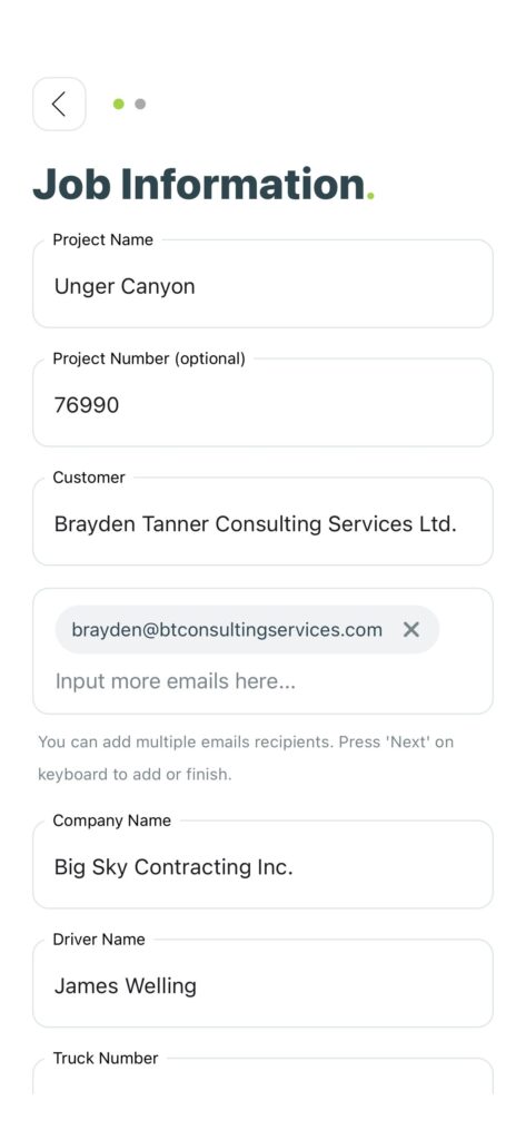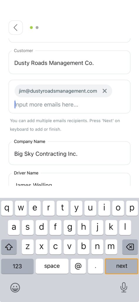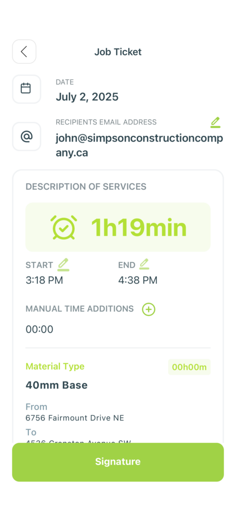 You can add extra email recipients to a job at several different points, depending on your workflow. This includes when you’re starting a new job, duplicating an existing one, reviewing the job summary before signing the ticket, or viewing a completed job in your History tab. Each scenario allows you to enter or edit recipient email addresses so that delivery tickets are sent to the right people. The sections below walk through each method, with a screenshot to help guide you.