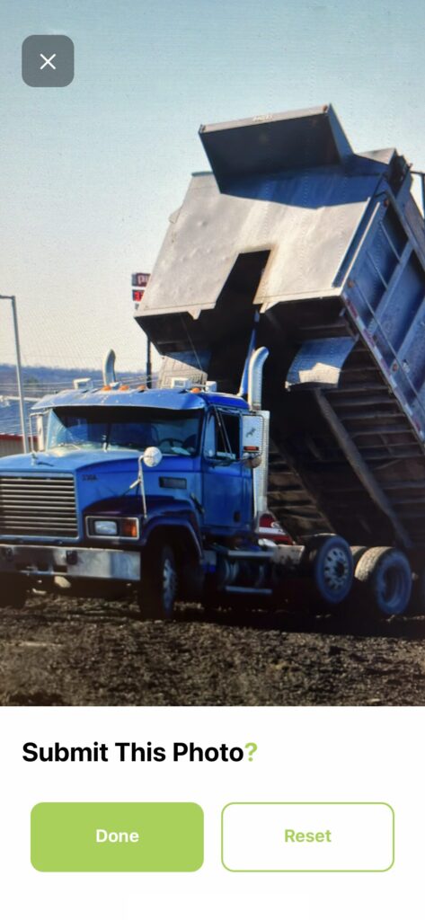 Try to take photos in good lighting and include identifying details like truck or site features.