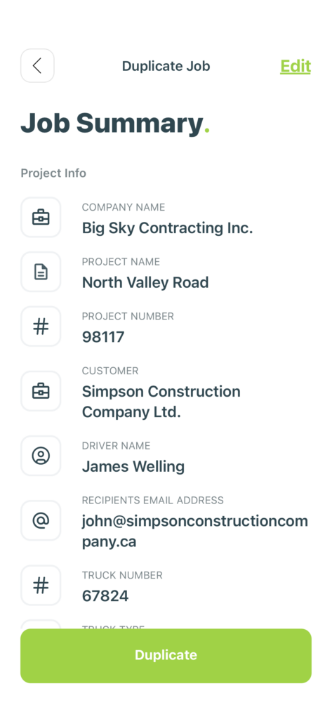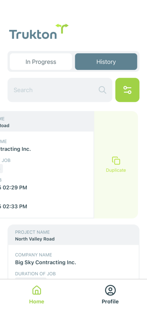 Need to run a similar job again? Trukton makes it easy to duplicate a past job so you can skip the re-entry and get hauling faster.