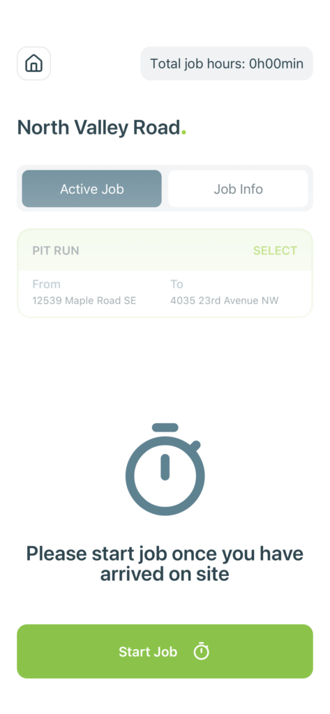 Once you’ve arrived at the job location, tap Start Job to begin tracking time. The timer will track total job hours from the moment you start.
